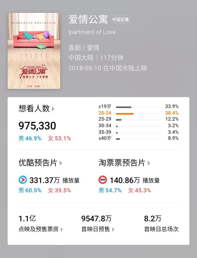《愛情公寓》一直以來都帶有很強的爭議性,劇版雖然一到四季都撕不掉“抄襲”的標簽,但在宣傳力度上卻毫不落于人后,從電影定檔到現在,熱度只高不低。現今《愛情公寓》電影的預售票房即將過億,和之前的《我不是藥神》相比,似乎都有了可以一較高低的勢頭,而從電影的網絡宣傳上也可以看出,這是一部充斥情懷的大電影。