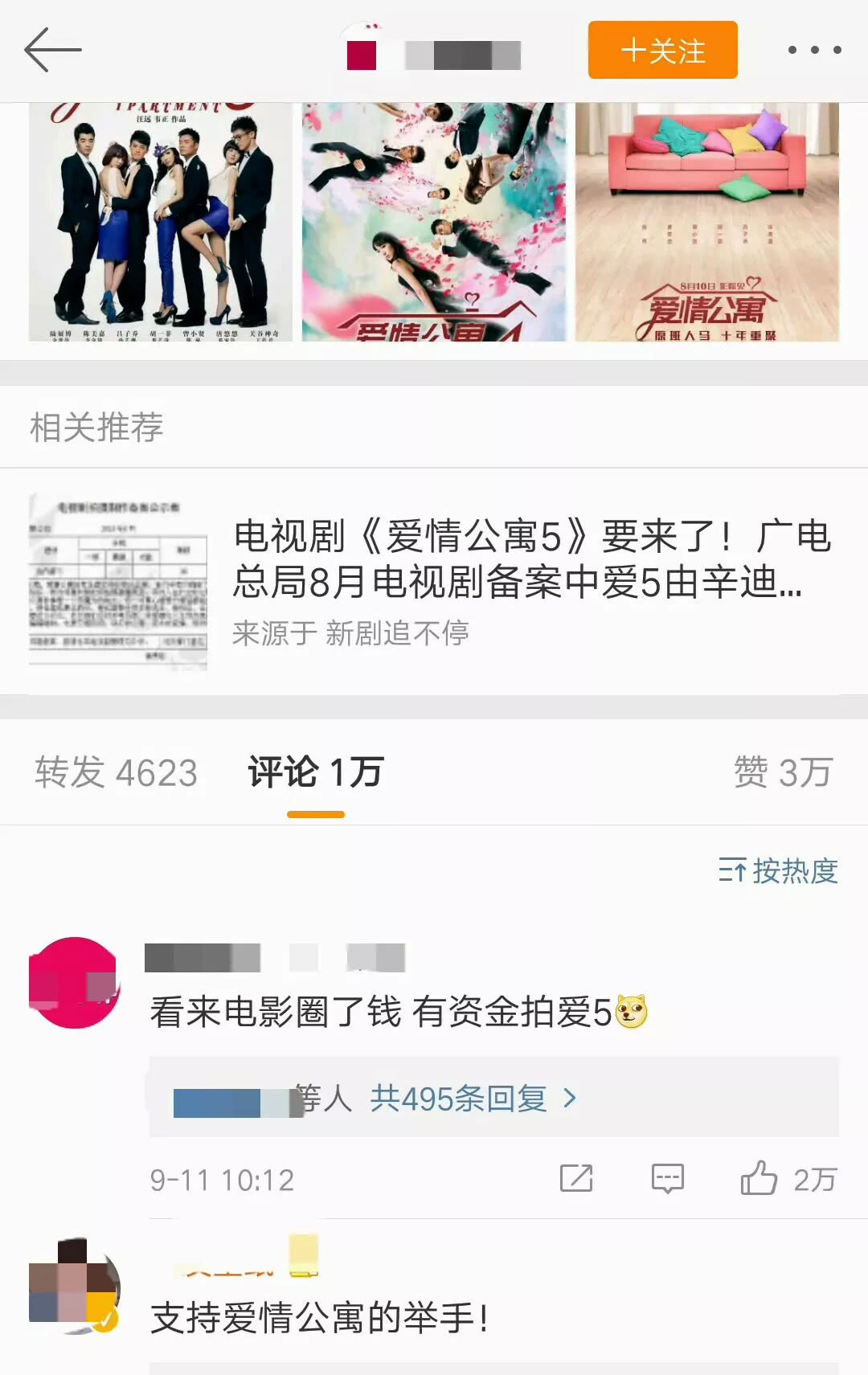 在《愛情公寓5》宣布備案的評論中,網友的觀點兩極分化嚴重。有部分網友表示會繼續支持愛情公寓。有部分網友說愛情公寓電影版圈錢,持否定態度,還有一些網友比較關注演員陣容問題。