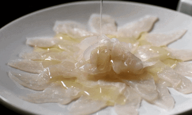 另外,片中還通過運用顯微攝影技術向我們解釋了為什么吃螃蟹蘸醋汁更好吃,在看到當酸性物質接近蟹肉,蟹肉的肉質纖維會瞬間展開時。這時,我們就很直觀的了解到蟹肉為什么突然變得美味了。還有在制馬肋排時,剔透的鹽粒在鮮紅的肉上跳躍變化,也極具戲劇性。